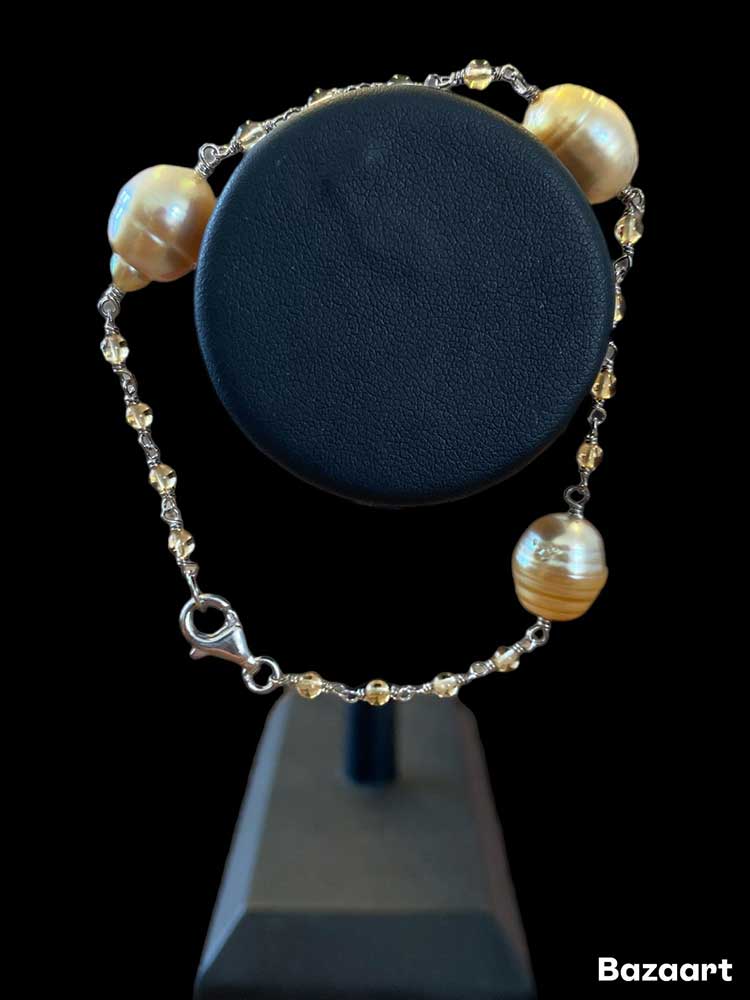 Silver Golden Sea Pearl with Genuine Citrine Bracelet