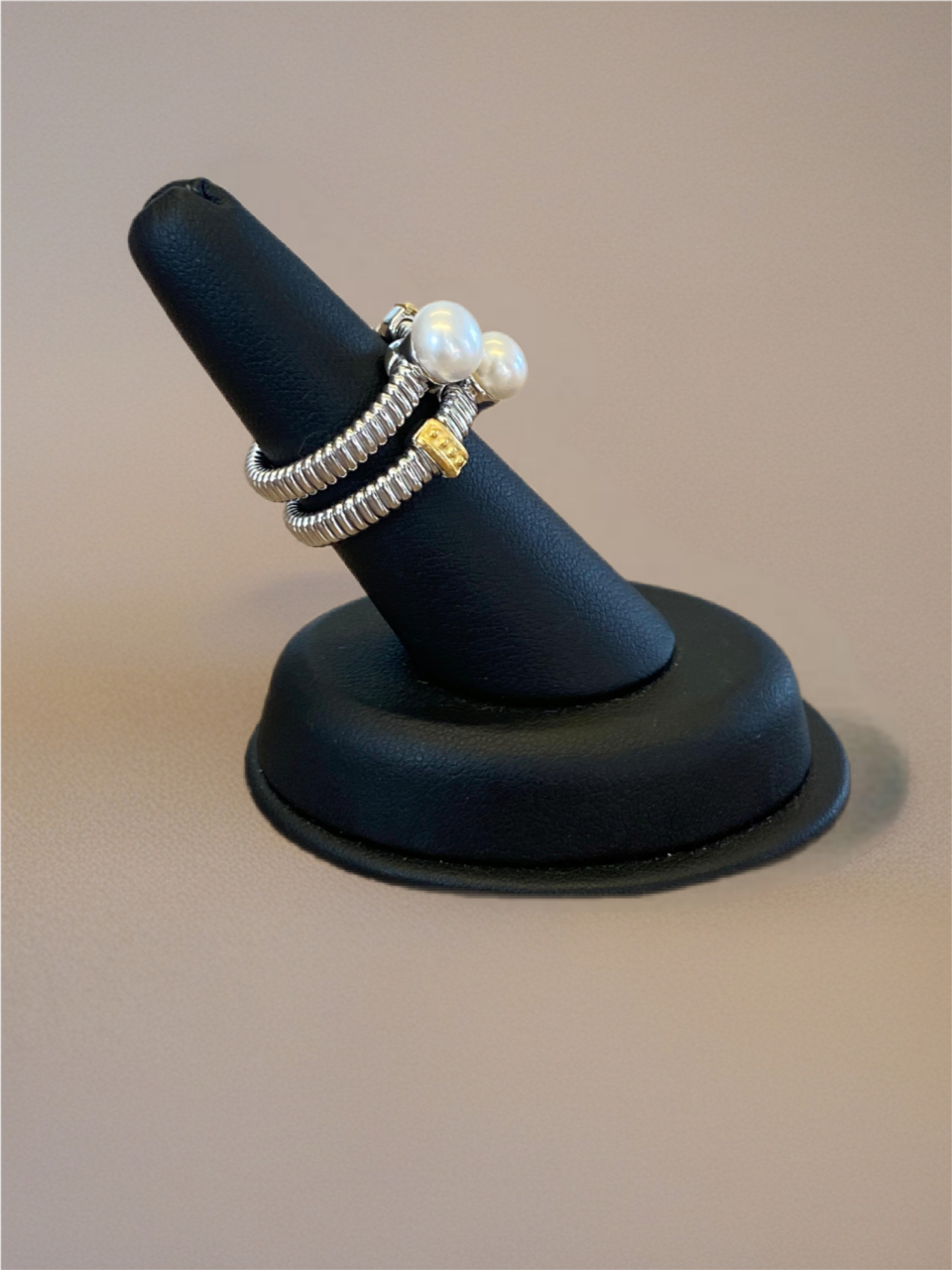 Sterling Silver Double Twisted with .17cttw Diamond Ring