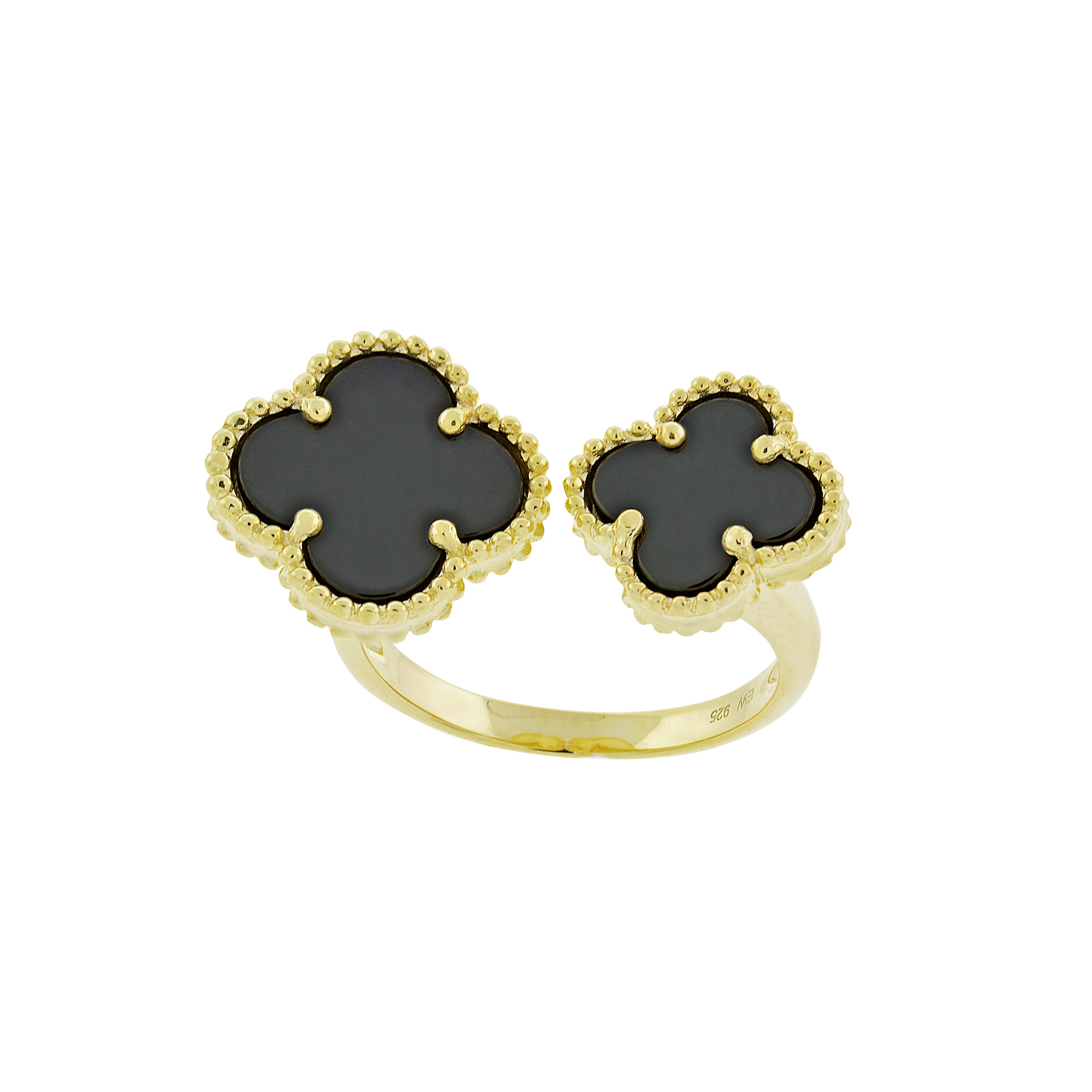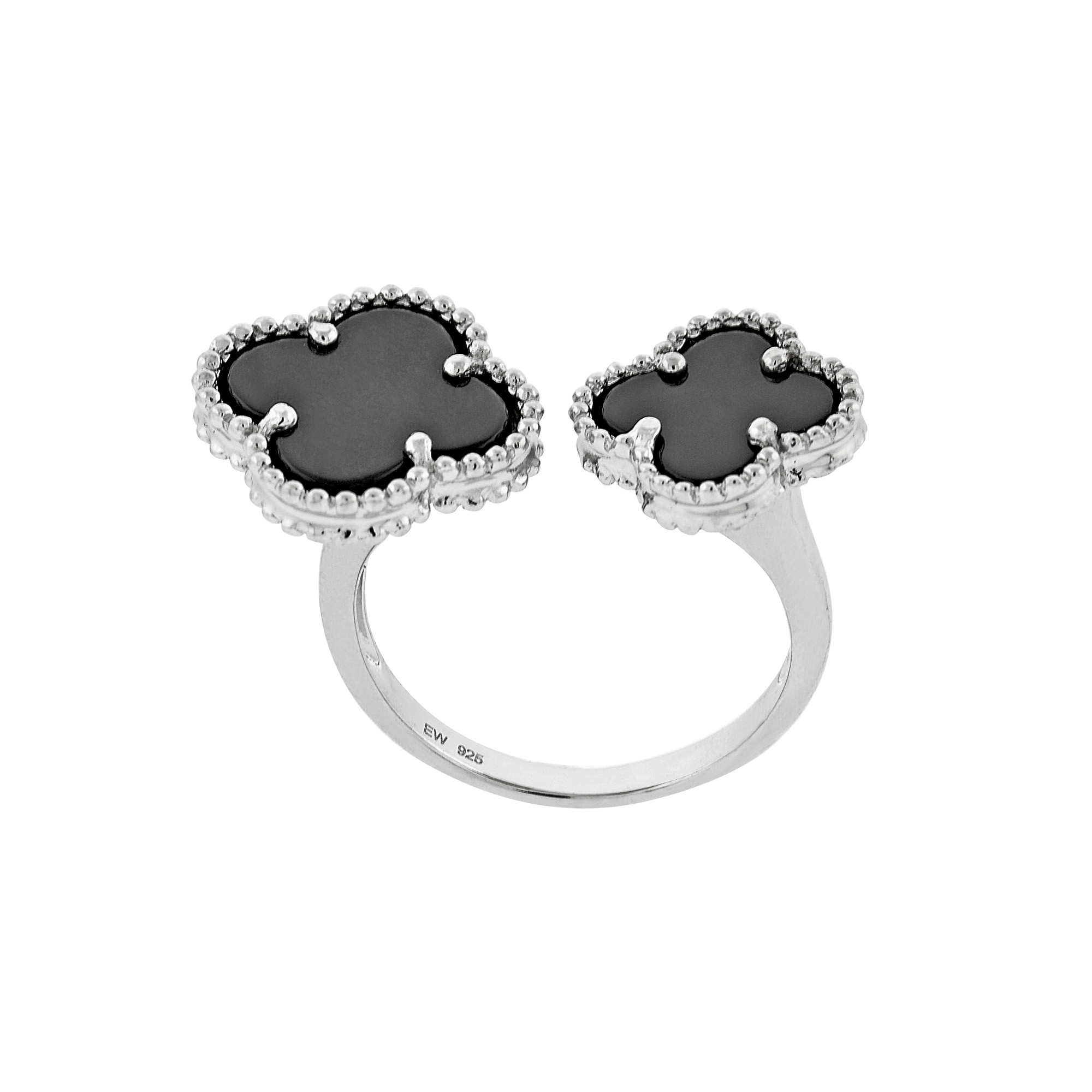 Sterling Silver Double Clover Onyx Ring