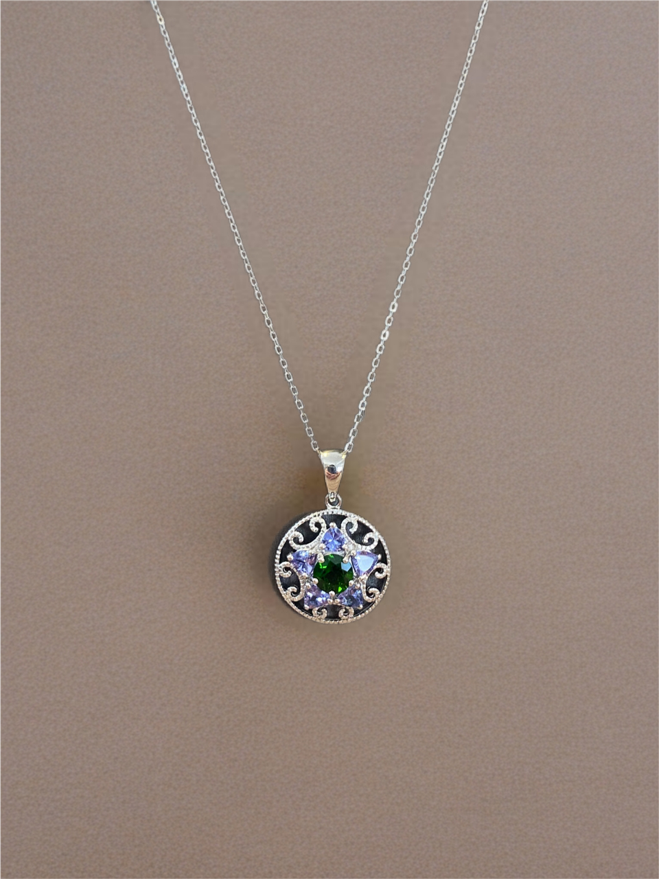 Sterling Silver STG Diopside & Tanzanite Pendant