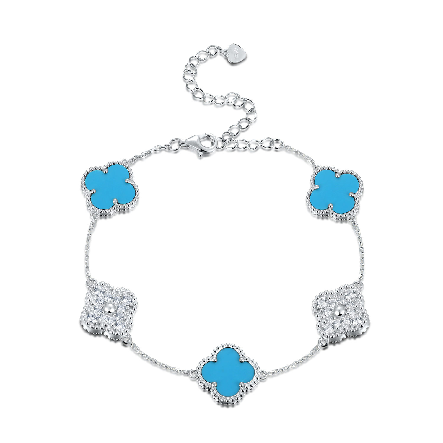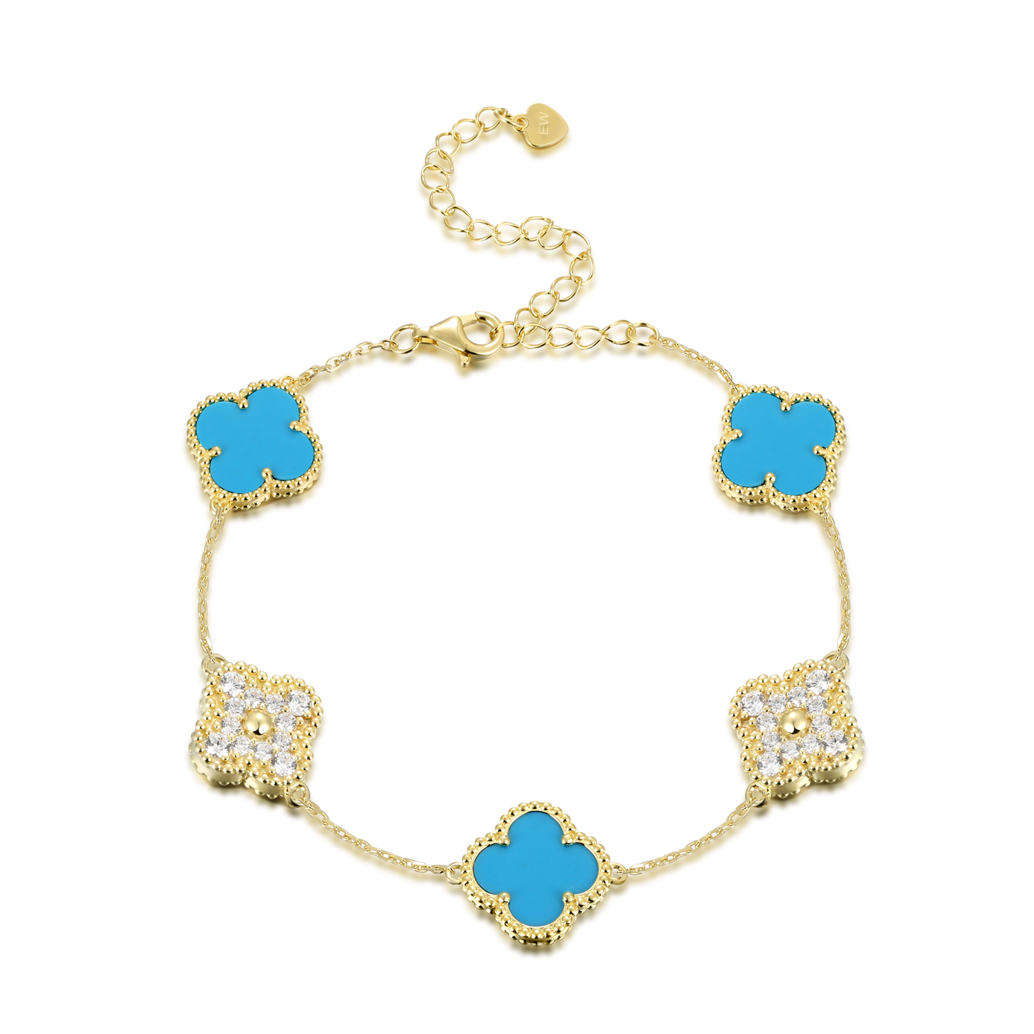 Sterling Silver White/Yellow 5-Clover Turquoise & CZ Bracelet