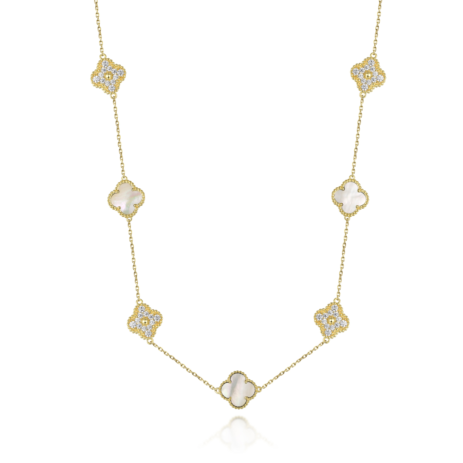 Sterling Silver White/Yellow Clover Mother of Pearl & CZ 36” Necklace