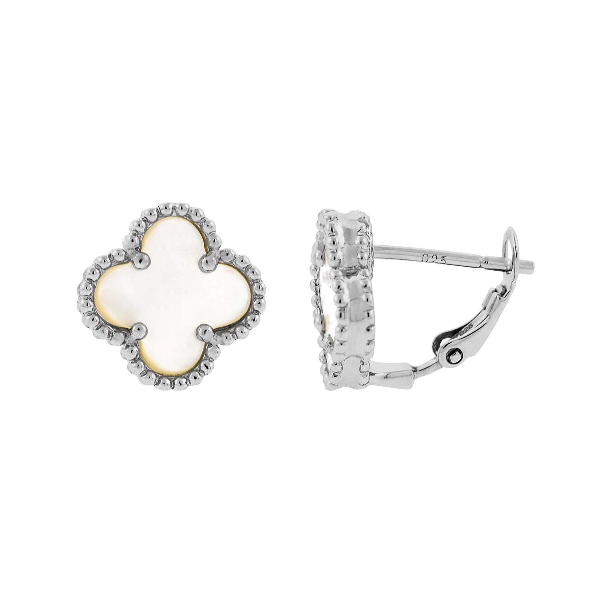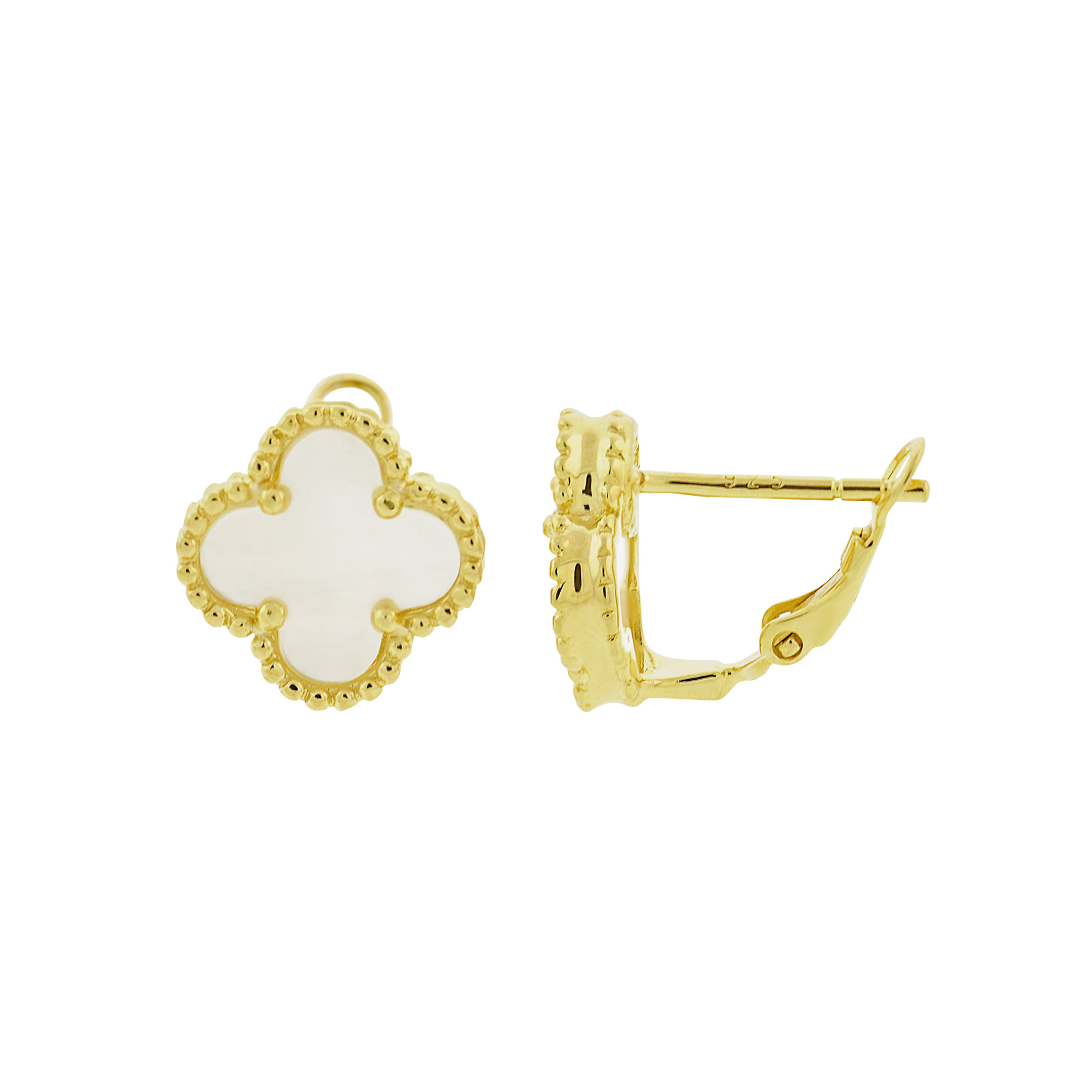 Sterling Silver White/Yellow Clover Mother of Pearl Studs Earrings