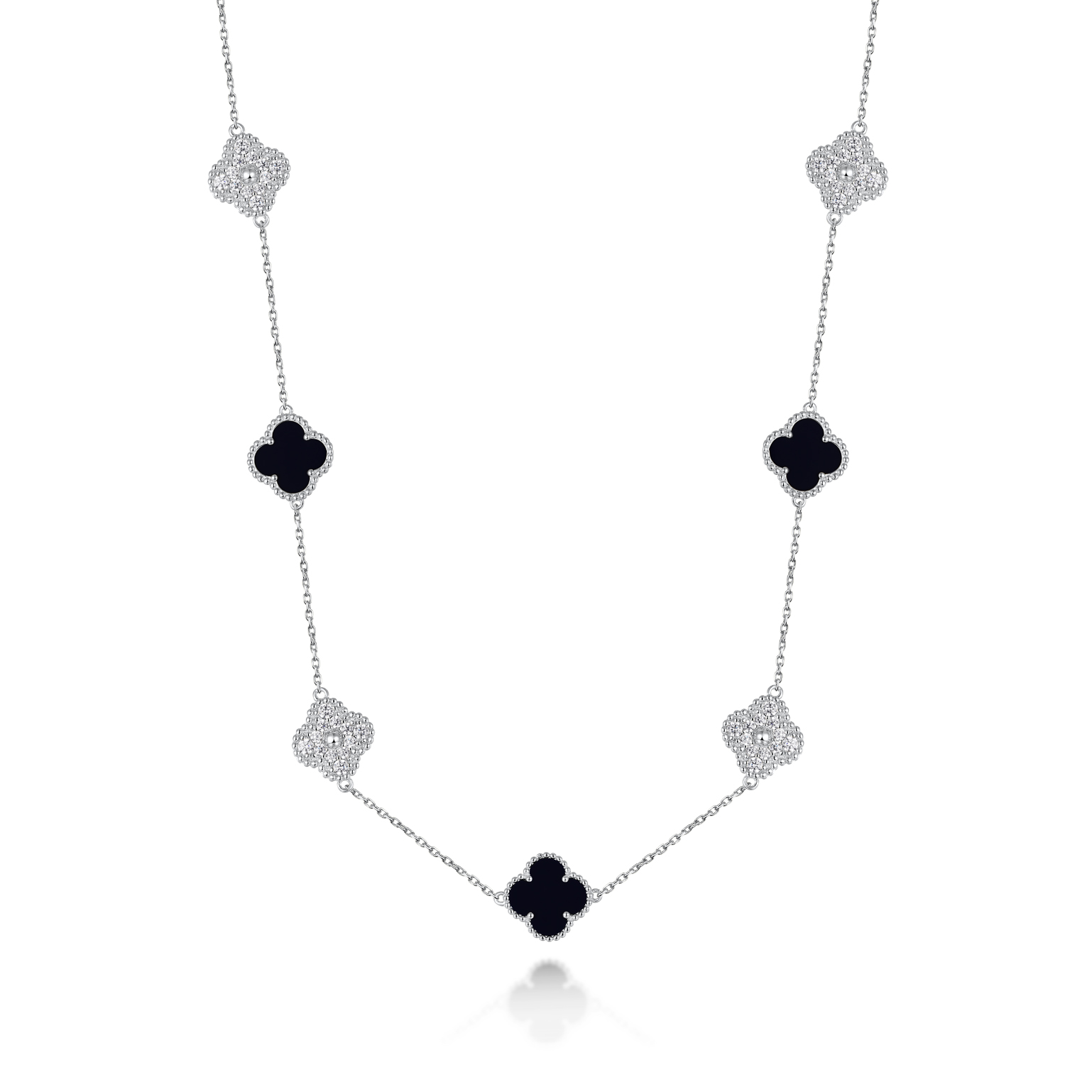 Sterling Silver White/Yellow Clover Onyx & CZ 36” Necklace